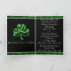 This elegant Irish Wedding Invitation design is done in greens and black, featuring the 3 leaf clovers. This set includes Irish wedding invitations, RSVP cards, thank you cards, customised stamps, table setting cards, t shirts and much more.