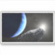 An artist's concept of Neptune's tiny moon Hippocamp that was discovered by the Hubble Space Telescope in 2013. Only 20 miles across, it may actually be a broken-off fragment from a much larger neighbouring moon, Proteus, seen as a crescent in the background. This is the first evidence for a moon being an offshoot from a comet collision with a much larger parent body.
