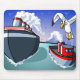 A cruise ship leaves the dock and sets sail. This colourful, bold, simple design features birds, boats and the open sea in the ultimate oceanic adventure! This colourful, bold, simple mousepad is available for your customisation.