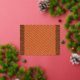 an orange and yellow background with small squares foil holiday postcard