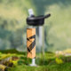 an orange surface with irregular black lines water bottle