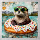 An adorable otter vacations in a cute floating doughnut as it chills on a river float a mixed media style AI generated collage