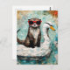 An adorable otter in sunglasses vacations on a cute floatingswan as it chills on a river float a mixed media style AI generated collage