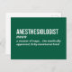 A funny anaesthesiologist definition postcard for those who know the stress and humour of working in anaesthesia. Perfect for doctors, CRNAs, residents, and med students. Makes a thoughtful appreciation or gag gift for hospital coworkers.