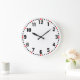 A nice simple analogue style clock face, attractive bold numerals with the minutes marked with black spots and the hours in slightly larger red spots.