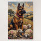 A highly detailed, dramatic landscape painting featuring a massive Anatolian Shepherd standing watchfully over a small flock of sheep, each sheep marked with a tiny pink heart, and the dog wearing a thick collar decorated with carved red hearts. A loyal and detailed Valentine's Day gift for Anatolian owners.