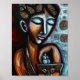 The subject's face, chraacterised by abstract forms and bold lines, draws you into a narrative that is both timeless and immediate. The metallic gold accents and textured patterns on the forehead suggest a crown or a type of spiritual armour, symbolising wisdom and strength passed down through generations. To the side, whimsical shapes and eyes hint at the presence of unseen observers, adding a layer of mysticism to the piece.