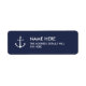 A simple blue address label with a small white anchor and editable text for the name and address details.