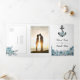 Vintage anchor and dusty blue watercolor flowers nautical tri-fold wedding invitation with detached RSVP card. A lovely wedding design for a nautical theme wedding that includes a vintage black anchor and dusty blue watercolor cactus flowers. The names are in script typography. Detach the inside last panel and use it as RSVP card. The outside back panel includes a photo of the couple.