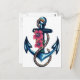 Tattoo style digital artwork of an sailor-style anchor and flowers.
