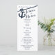 Anchor and rope nautical design printed rack card wedding programs in dark navy blue text.