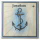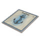 Personalised ceramic tile depicts a blue and grey anchor with a rope and a nautical map design background.