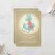 A nautical-theme invitation with a feminine touch. The gold-based card features a round decal with a blue anchor and a crescent of pink roses.