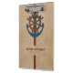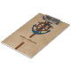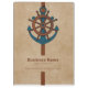Modern blue anchor and brown ship rudder over a beige watercolor background. Optional monogram