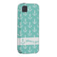 An Apple iphone case with white anchors and a phrase of encouragement that reads Refuse to sink with a background colour like that a very famous jewellery company 's box