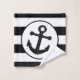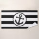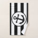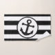 Bath towel black stripes and anchor design. This bathroom towel set can be customised with any text of your choice. Should you require any help with customising then contact us through the link on this page. Anchor design striped bathroom towel