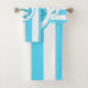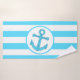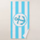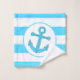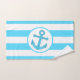 Bath towel blue stripes and anchor design. This bathroom towel set can be customised with any text of your choice. Should you require any help with customising then contact us through the link on this page. Anchor design striped bathroom towel