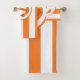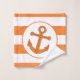Bath towel orange stripes and anchor design. This bathroom towel set can be customised with any text of your choice. Should you require any help with customising then contact us through the link on this page. Anchor design striped bathroom towel