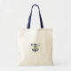 A minimalist botanical floral anchor monogram wedding design. A simple nautical design that uses a watercolor anchor decorated in floral, seashells and starfish creating a unique monogram. A charming navy blue and white tropical beach design with classy script typography. An elegant coastal beach themed wedding tote bag design with modern elements. Matching wedding invitations and other stationery items are also available.