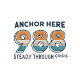 The design commands attention with a storm-to-calm gradient backdrop and a steadfast anchor graphic that integrates 988 directly into its form. "Steady through crisis" appears in clear, emergency-style typography—ensuring the message and number remain visible when needed most. Printed on a classic white tee, the high-contrast design is readable from a distance.