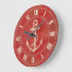 Anchor, vintage engraving. Cream on textured red background. Roman numerals.
