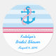 Modern and eye-catching sticker, great for an event with a nautical theme. Features an anchor, a rope border and a stripes background. Ideal for a summer party. Add your own wording.