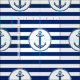 Classic nautical design: anchor on navy blue white stripes. Decorative and trendy design.