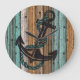 Vintage anchor on an aqua turquoise blue and peach orange coloured weathered wooden boat deck planks pattern. Made for the sailor, boater, water sport, boating, sailing, ocean or sea lover. Cute, fun, classy and fashionable decor items for those who love decorating their master or children's bedroom, nursery, living or family room, college dorm, apartment, beach house, country cottage, log cabin, RV or camper, boat or yacht, lake or river home, vacation condo, or even their car with maritime theme inspired décor accents and accessories.