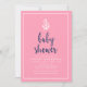Stylish Nautical Baby Shower invitation featuring an anchor and the words "baby shower" in a stylish blue script against a pink background with a white border is perfect for a girl baby shower. Card has a white stripes pattern against a blue background back side. Check out other baby shower items here https://www.zazzle.com/rosewoodandcitrus/gifts?cg=196748758771183969&rf=238364477188679314