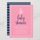 Anchor Pink and Blue Script Baby Shower Invitation