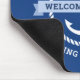 Mouse pad featuring a white nautical anchor surrounded by a rope border on a dark blue background. Across the anchor is a light blue banner with customisable text "welcome aboard". Add your boat's name and hailing port.