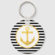 Custom keychain with black stripes and gold anchor nautical theme.
