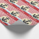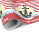 This gift wrapping paper features a graphic of an anchor with a rope, a yellow and white striped sun and several lines of blue water waves all on a red and white striped background. Customisable text allows you to add your own personal message.