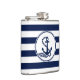 Anchor Symbol Blue And White Stripes Sailor Style Hip Flask