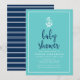Anchor Turquoise and Blue Script Baby Shower Invitation