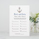 Nautical theme "Where were they" Bridal shower game with hand painted watercolor anchor design. Personalise the back of the card with name of the couple and shower date.