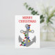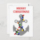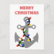 Send some holiday greetings with a nautical touch. This postcard features an illustration of anchor in grey that has colourful Christmas lights wrapped around it. The MERRY CHRISTMAS message in red lettering can be customised with your own greeting, and there's plenty of room on the back for writing your own message.
