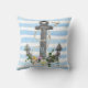 Nautical grey metal anchor with floral bouquet and rope on blue and white watercolor striped pattern