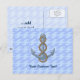 Anchor with rope illustration over waves light blue seamless background. Custom text.