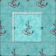 Anchors and stars pattern over a mottled blue background with the Festina Lente symbol of a fast-moving dolphin wrapped around an anchor. The saying is from Roman times which translates to "Make Haste, Slowly". Take your time and do it right.
