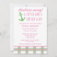 Anchors away! A little girl is on her way! Celebrate the arrival of a new baby in style with these nautical baby shower invitations. They feature a pretty pink and green colour scheme with a fun preppy plaid accent and nautical graphics.