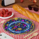 A seamless pattern of colourful silhouettes of anchors, helms, tall ships, sharks, fishes, brave pirates. Dark blue navy colour background. Ocean or treasure island adventures begin. Funny and positive paper plate for anyone. Customisable. You can change two template texts independently. If you want to SWITCH OFF/ON a round ring or both of them, or change something, do the following: click the "Personalise" or the "Edit Design" (as the case may be) button of the blue colour to the right of the product image. It will transfer you to the "Designer Tool" window. Click the "Layers" menu to the left, choose "Oval", click the small eye icon. You can switch on/off everything, add more text, geometric elements, change the colour of the background, change fonts, and do whatever you want. Just be creative and be happy!