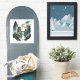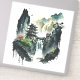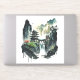 A beautiful vinyl sticker showing an ink illustration of a landscape with ancient Chinese architecture and majestic waterfalls.