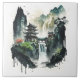 Ancient Chinese Ink Landscape with Waterfall Ceramic Tile