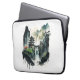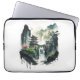 A beautiful laptop sleeve showing an ink illustration of a landscape with ancient Chinese architecture and majestic waterfalls.