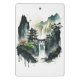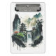 A beautiful mini clipboard showing an ink illustration of a landscape with ancient Chinese architecture and majestic waterfalls.