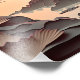 A beautiful brown photo enlargement print with a paper cutout scene depicting ancient Chinese building, trees, mountains and lake.