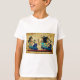 100% cotton so perfect for summer, It is a nicely designed t-shirt, the fabric is soft and the seams finished well, the body of the t shirt has no side seams. I bought a medium size for my two grandsons, aged 9 and 8 it will be slightly big on them but I would rather that than too small