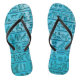 A pair of blue flip flops with ancient hieroglyphs engraved on stone. Feel free to customise the strap colour!
