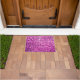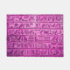 A purple door mat of ancient hieroglyphs engraved on stone.